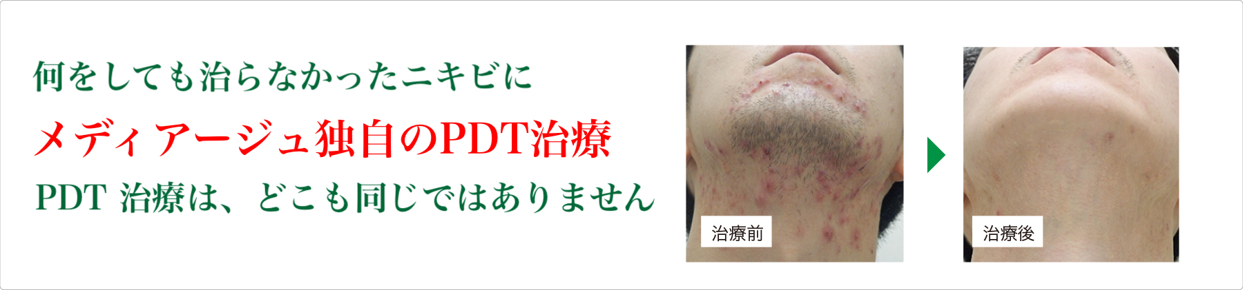 我々は、このような“他の治療で治らないニキビ”で悩まれている方に対して、真摯に向き合って治療を行ってきました。お子様の“そのニキビ”が治らないのには理由があり、その根本理由からアプローチできる治療がPDTです。