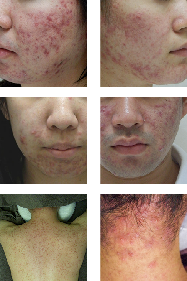 すべてのニキビで悩まれている方が対象です。特に他の皮膚科の保険診療、他の美容クリニッ ク等のニキビ治療でよくならなかった方は当院へご相談ください。