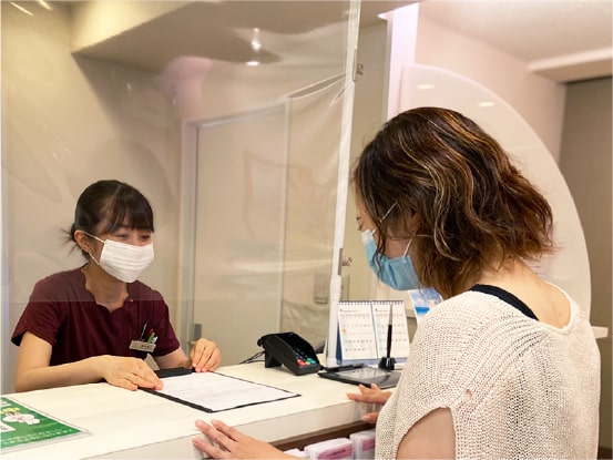 次回の予約や自宅ケア品のお求めも受付にお申し出ください。